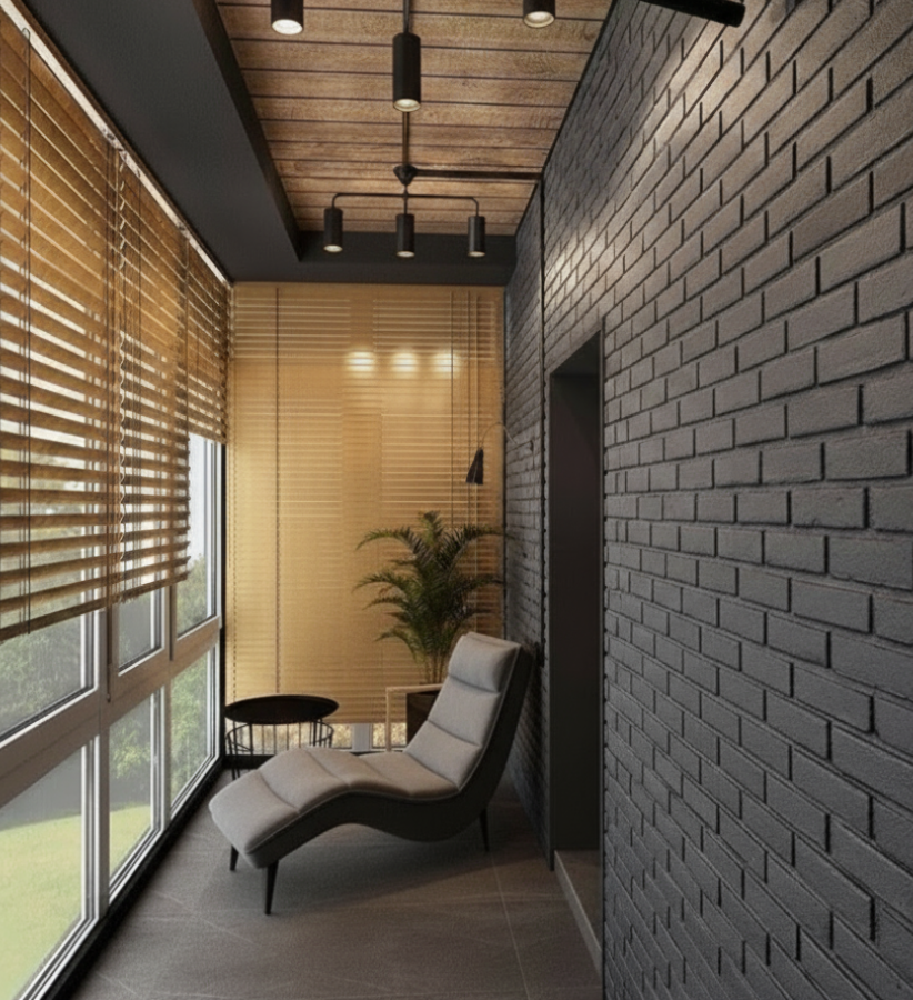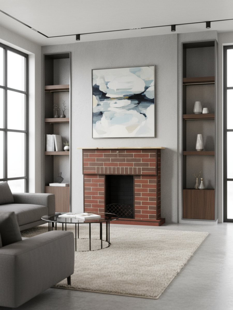 💡 Можно совместить: дерево на полу + белёный кирпич на одной стене.