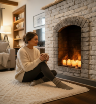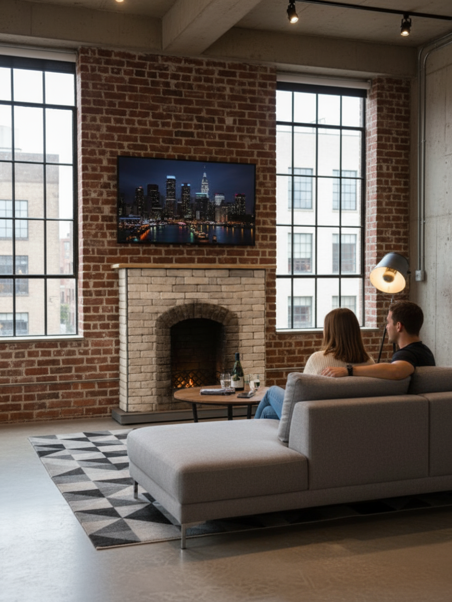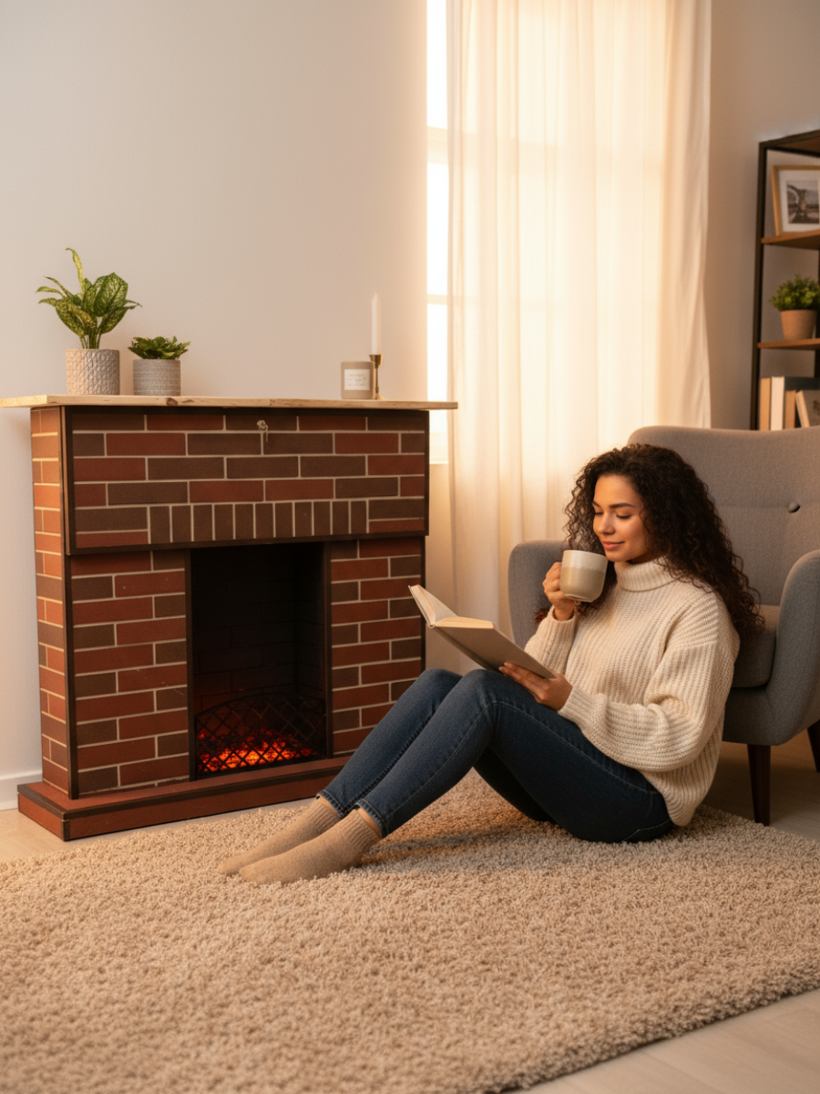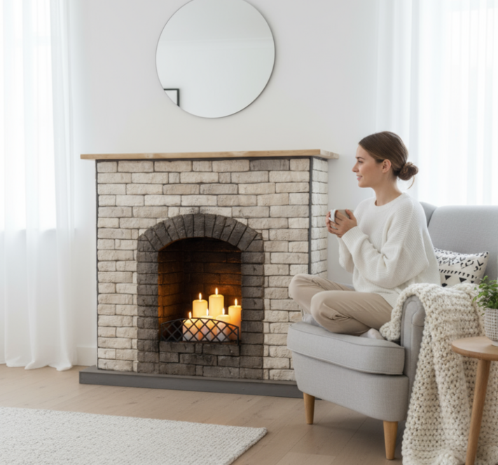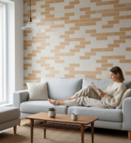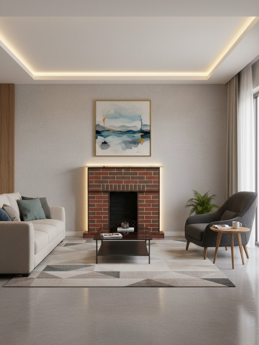 💡 Можно совместить: дерево на полу + белёный кирпич на одной стене.